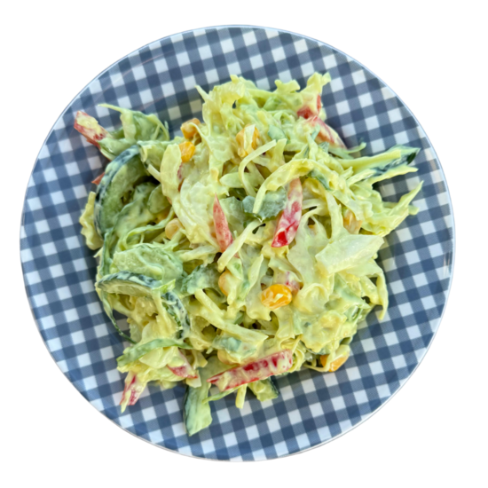 mais, komkommer, bleekselderij, paprika, spitskool, basis kipsalade