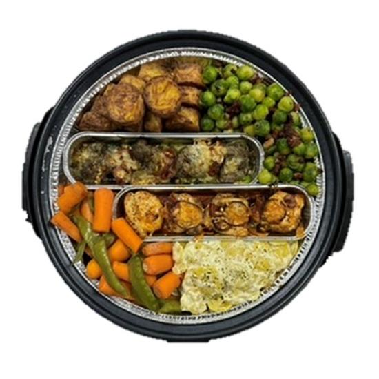 Kerstpan 2 Twee sleetjes naar keuze: - varkenshaas sleetje - kippen sleetje - biefsleetje - gamba sleetje *kies uw gewenste sleetjes in de keuze hieronder Gratin torentjes Aardappelgratin deluxe Worteltjes/peultjes Spruiten met spekjes deze pan is geschikt voor 4 personen de pan wordt in bruikleen erbij geleverd.