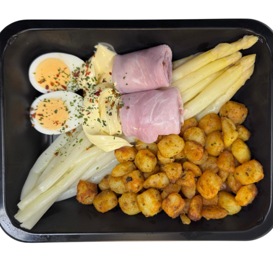 asperges - ham - ei - Hollandaise saus - gemarineerde krieltjes
